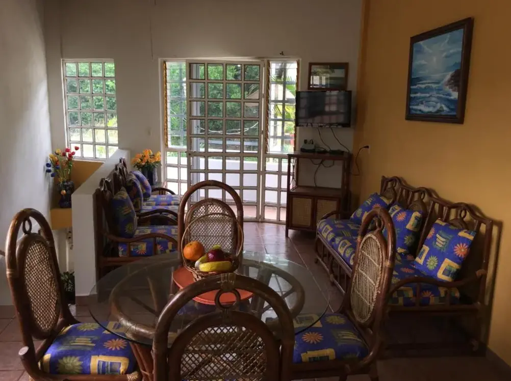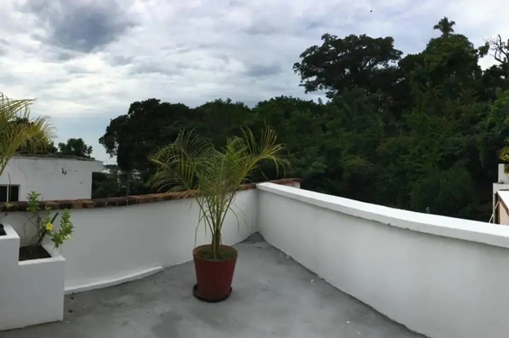 Las escaleras están muy inclinadas y trabe que tiene esta muy baja, para una persona que mide 1.80 y al subir la escalera me golpe ya que tuve que inclinarme mucho, llovió muy fuerte y se filtró el agua a la Sala, Recamara y Cocina muy resbaloso el piso.